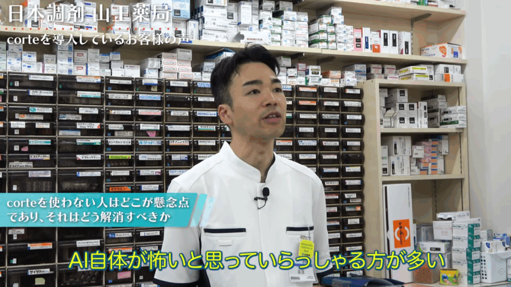 corte導入前は思い返して薬歴を作成しなければいけなかったので、二重に時間を取られてしまい、時間の切迫感を感じるなどの課題がありました。